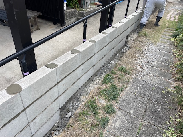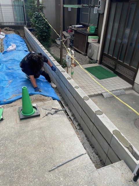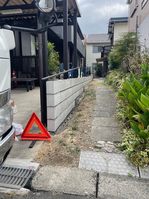 K様より「草木を除去して、ブロックを積み直して、境界を明確にしたい」