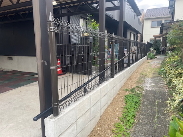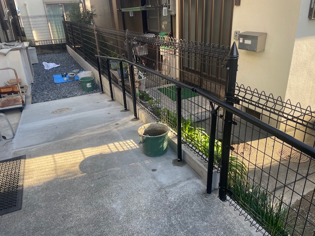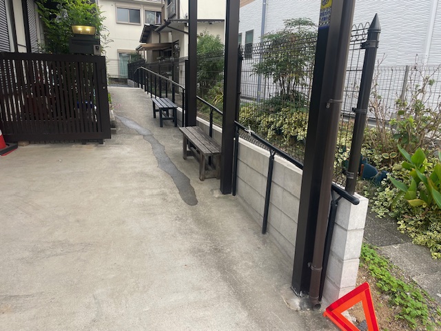 境界ブロックの積み直し+フェンス・手すり・スロープ増設の
