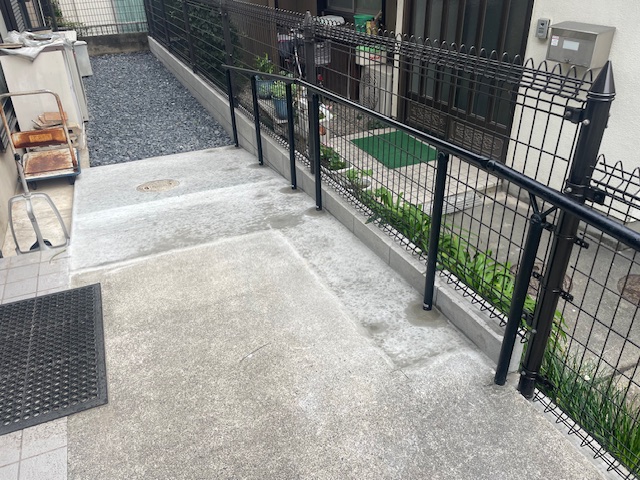 玄関の反対側スロープも、製作してコンクリートを打設しました。