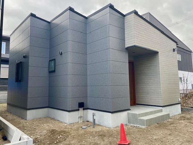 外壁工事も進めていき、仕上げはサイディングを貼ります。