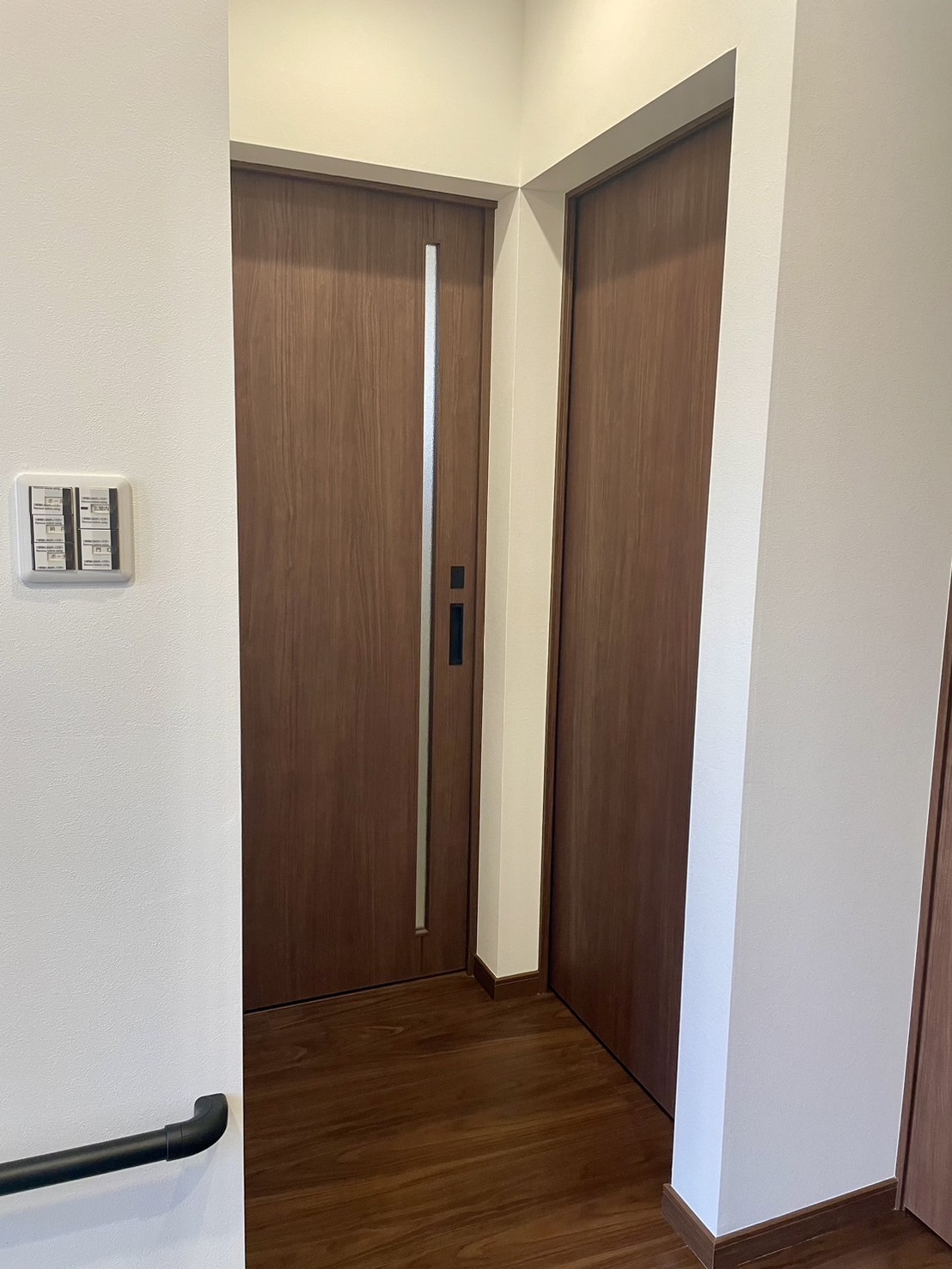 玄関から、左側にトイレ、右側に洗面・浴室の水回り、