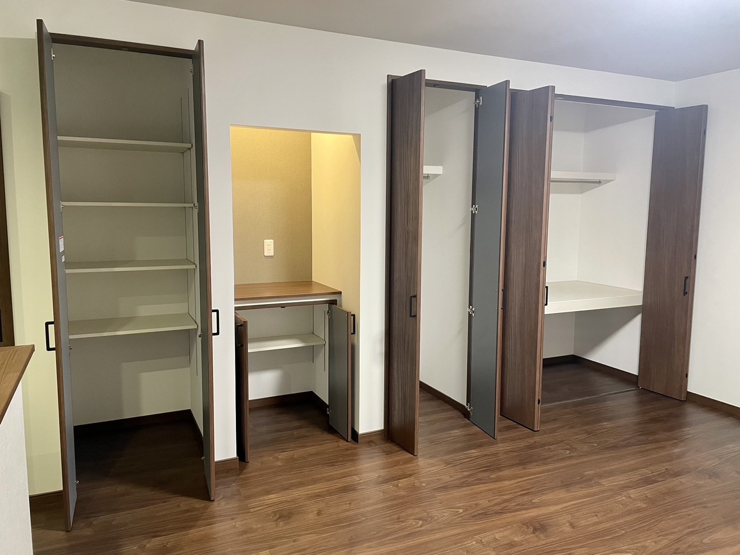 こちらにも、大容量のクローゼット収納を設置して、外に物を置かず、