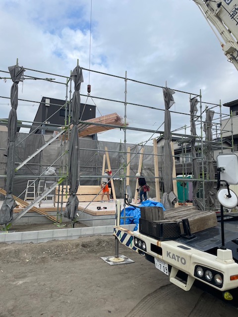 いよいよ【土台】を敷いて、【棟上げ】工事に進みます。