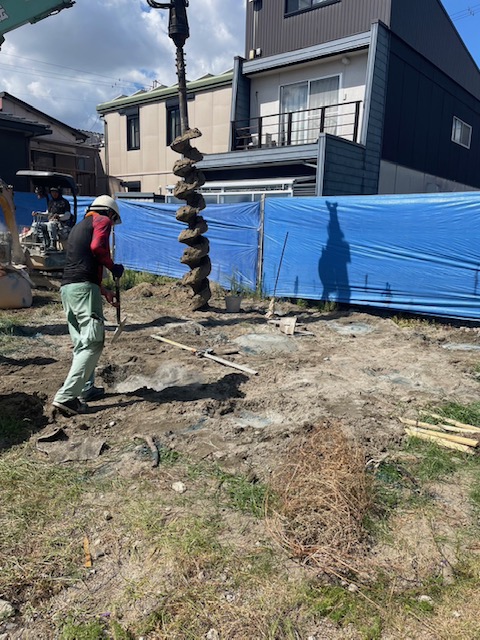 こちらの地盤は【柱状改良】にて、地盤補強を施します。